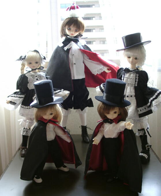 服:SD用ゴス服、MSD用の黒ドレス、猫耳、MSD用マントとシルクハット